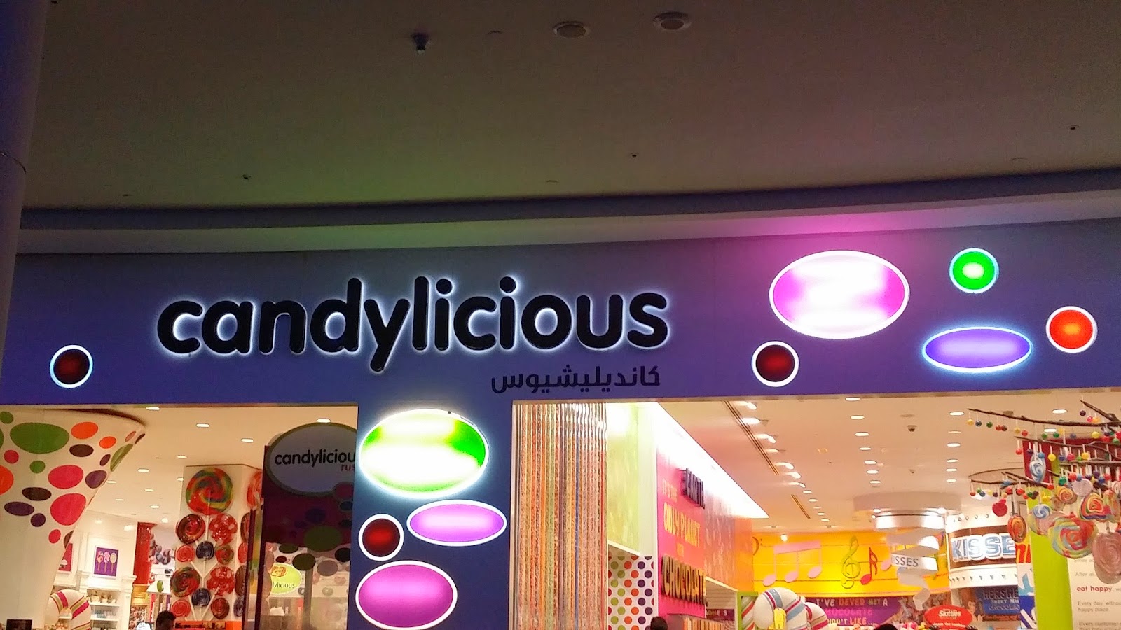 World's largest candy shop in Dubai mall, in front of the aquarium.